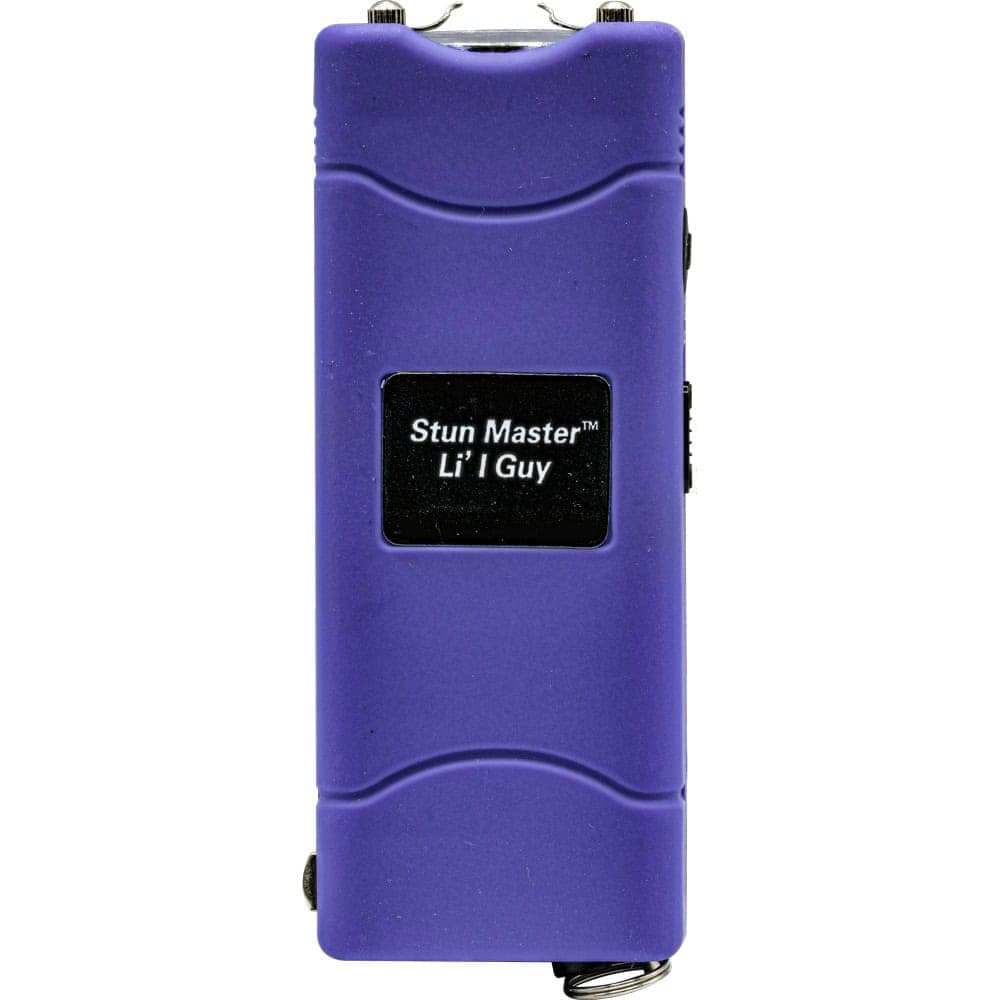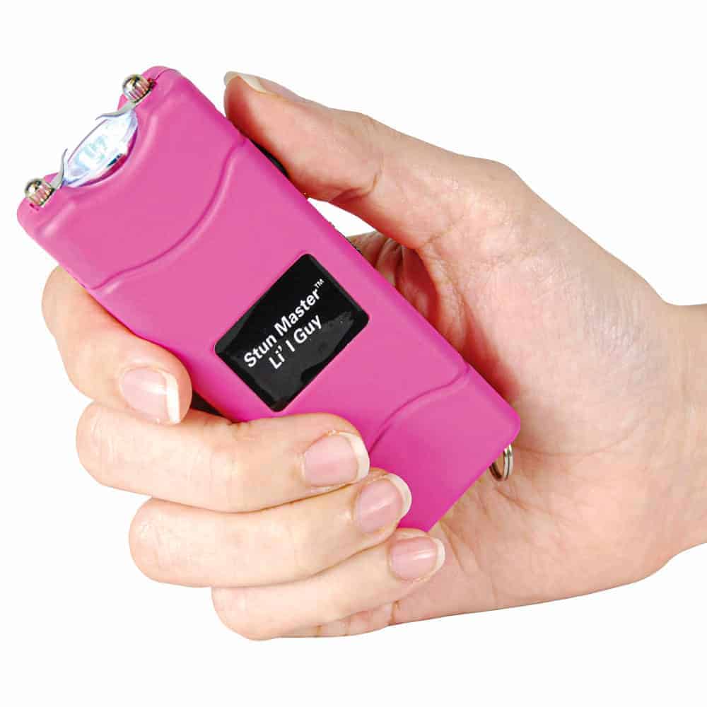 Lil Guy 60,000,000 volts Stun Gun W/flashlight and Nylon Holster. This little stun gun is small and compact with 4.4 milliamps depending on the freshness of the batteries. It has a super bright, 100 Lumen, LED flashlight built in charger and comes with a nylon case. It measures only 3 3⁄4″ x 1 1⁄2″ x 3⁄4″. The safety switch is off when in the down position, middle position is the super bright LED flashlight, and in the up position the shock is turned on once the trigger is pressed.